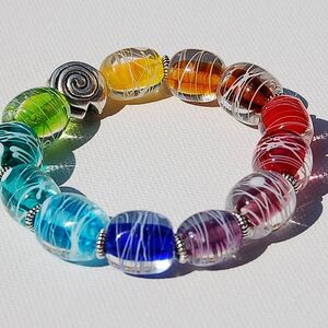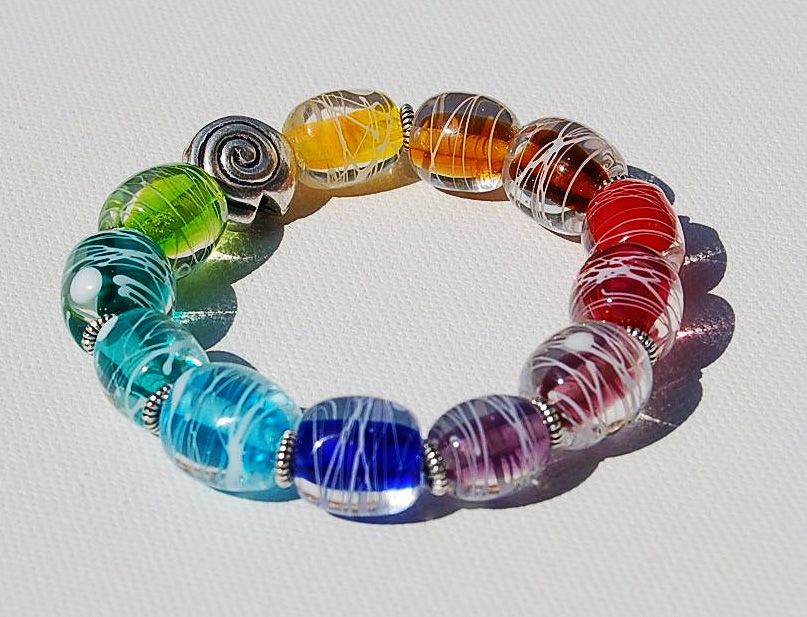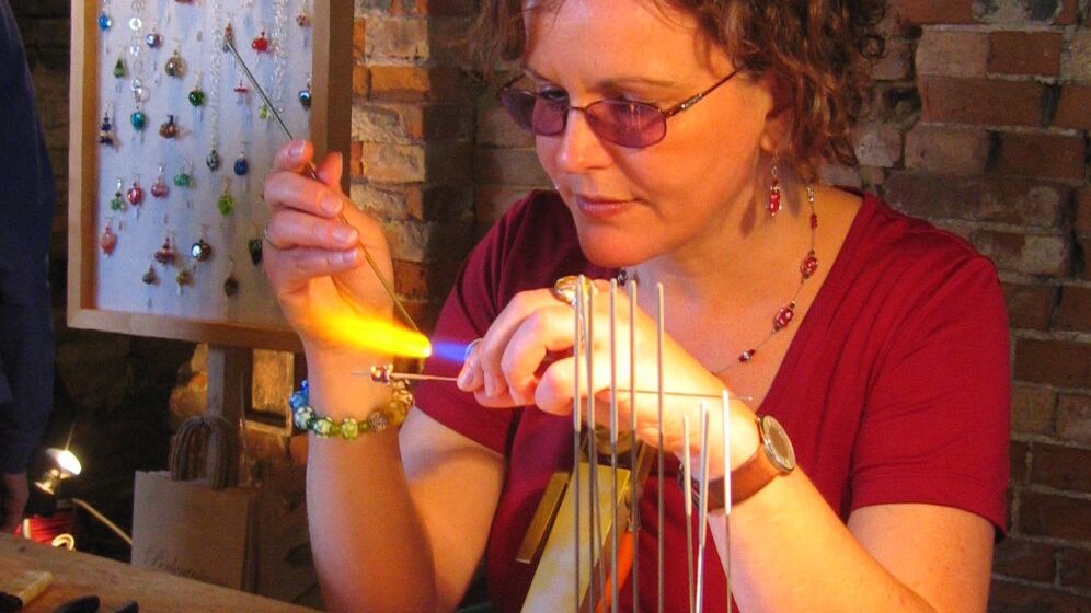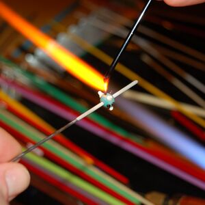 Bei 1300 Grad wickle ich jede Perle in der offenen Flamme selbst. Dabei verarbeite ich Glas von der Insel Murano, aber auch aus anderen Glashütten, beispielsweise aus Lauscha. Jede Perle ist ein kleines Kunstwerk und ein Unikat. Ich bin begeistert, was ich aus heißem Glas erschaffen kann und freue mich, dieses alte und faszinierende Kunsthandwerk für mich entdeckt zu haben. Meiner Kreativität sind dabei keine Grenzen gesetzt.